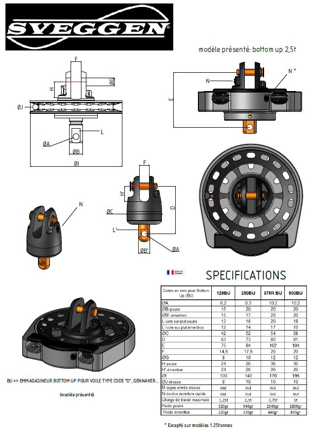 Il se fixe au pont ou sur un bout dehors avec une manille Ø10 fournie.